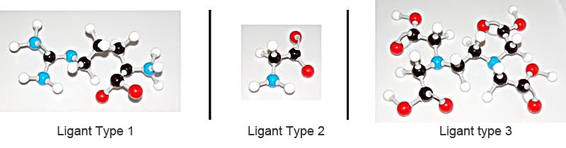 The definition of a chelate does not specify ligand type or size. This is a very important fact to remember. There are a host of molecules that can serve as a ligand. Some possible ligands are so bad for the environment that they are controlled by strict regulation (see EDTA at the end of this article). Others are so large they must be broken apart in order to be absorbed. If the ligand must be broken apart to be absorbed, it is not much better than an inorganic mineral. The ligand type will also give the resulting chelate different properties. Ligand choice is a distinguishing feature of chelated mineral products. See the illustration below of different types of ligands.
