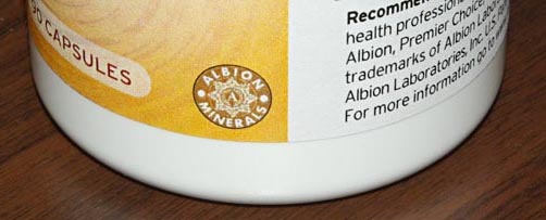 We are willing to put our name on the label of products conforming to our strict guidelines. This assures you, the customer, of getting a fully reacted, fully effective mineral chelate. If you are paying a premium for a mineral chelate, you want assurances it is a real chelate, 100% proven effective. If you want traceability; proof, and 100% effectiveness, you want ALBION. Look for the Albion Gold Medallion seal on your packages.